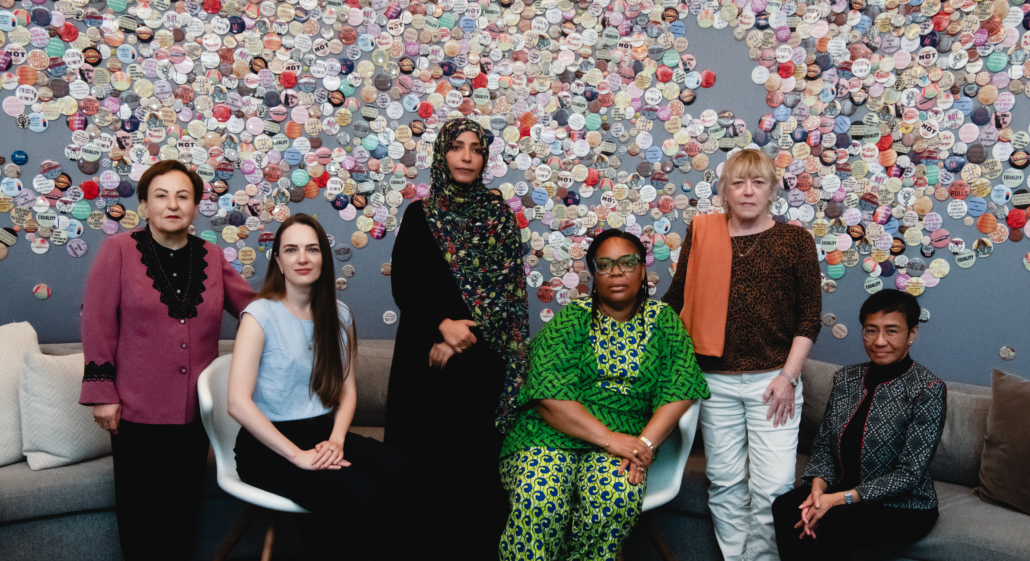 Jody Williams, Shirin Ebadi, Tawakkol Karman, Leymah Gbowee, Rigoberta Menchú Tum, Narges Mohammadi, Maria Ressa and Oleksandra Matviichuk – all Nobel Peace Prize Laureates